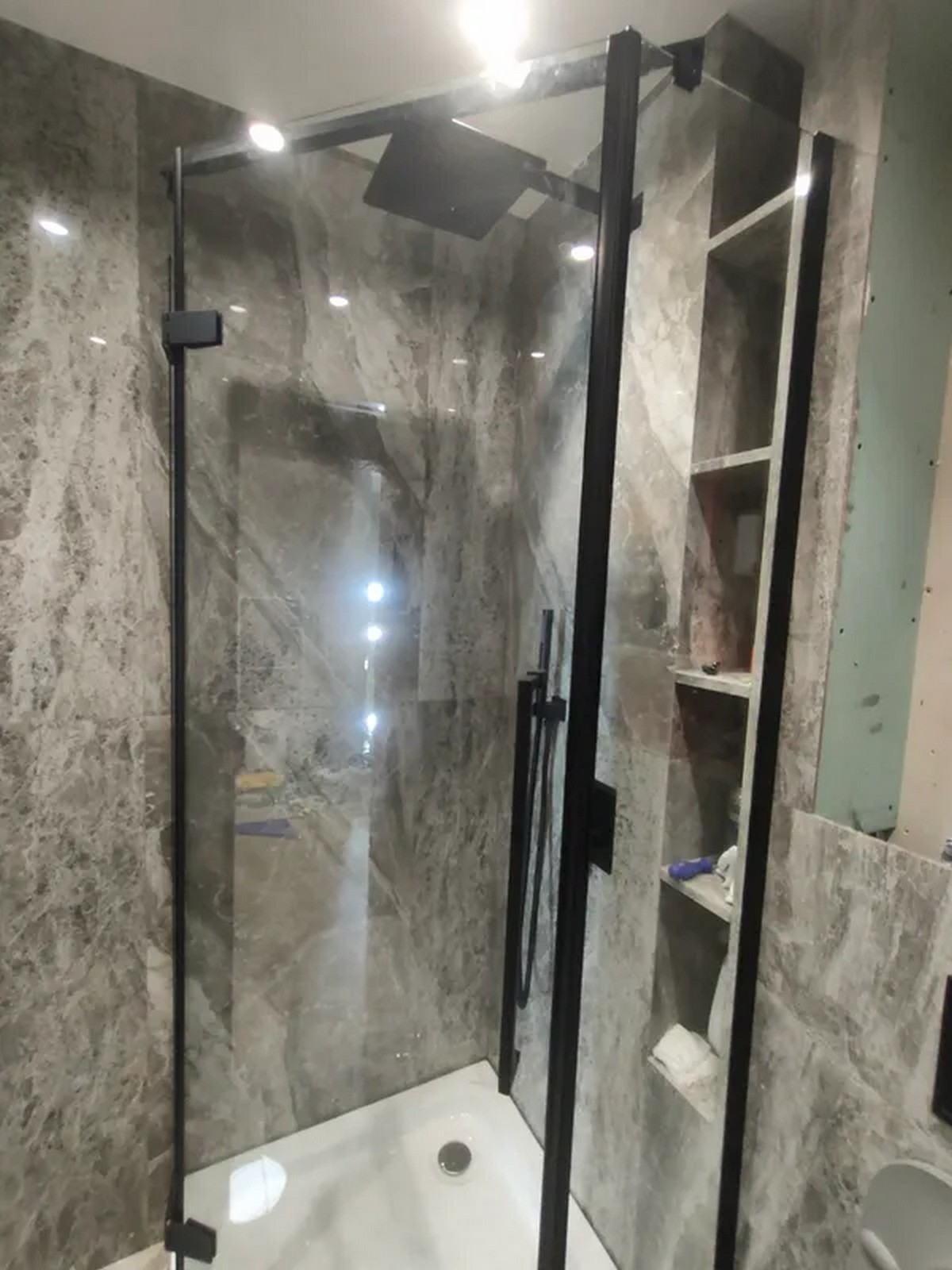 Основная распашная дверь обеспечивает удобство эксплуатации. В комплекте — латунные петли, ручки и кронштейн для надёжной фиксации и стабильной работы. Черный профиль придает современный вид и выделяет конструкцию в интерьере. Душевой уголок рассчитан на установку на низкий поддон (приобретается отдельно), что даёт выбор дополнительного оборудования.
