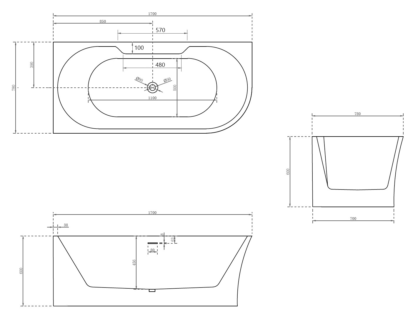 - Слив-перелив: ванна оснащена щелевым сливом-переливом, который обеспечивает эффективный отвод воды и предотвращает ее перерасход.