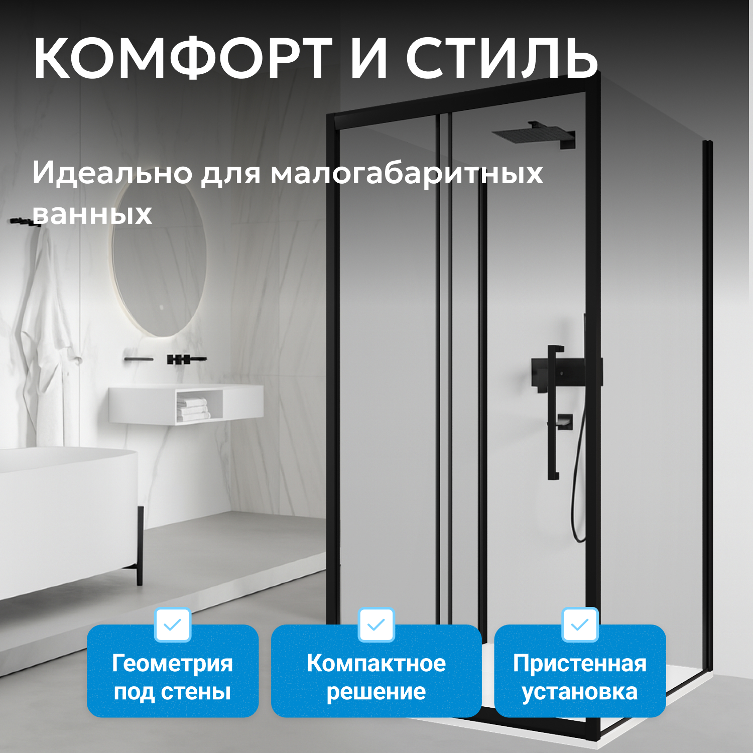 Душевой уголок ABBER Schwarzer Diamant AG30150BH-S100B-S100B — прямоугольная конструкция с прозрачными стеклянными полотнами толщиной 6 мм и черным профилем для пристенного монтажа. Модель оснащена раздвижной дверью на двойных роликах для плавности движения, увеличенными металлическими ручками и рассчитана на установку с низким поддоном (приобретается отдельно). Ширина входа — 648 мм, длина — 150 см, ширина — 100 см. Прозрачное стекло визуально расширяет пространство, черный профиль гармонирует с современными стилями интерьеров. Немецкие стандарты качества и лаконичный дизайн позволят интегрировать душевой уголок в любую ванную комнату, где важна эстетика и практичность. Модель не оснащена доводчиками и водоотталкивающим покрытием, что подчеркивает надежность конструкции.
