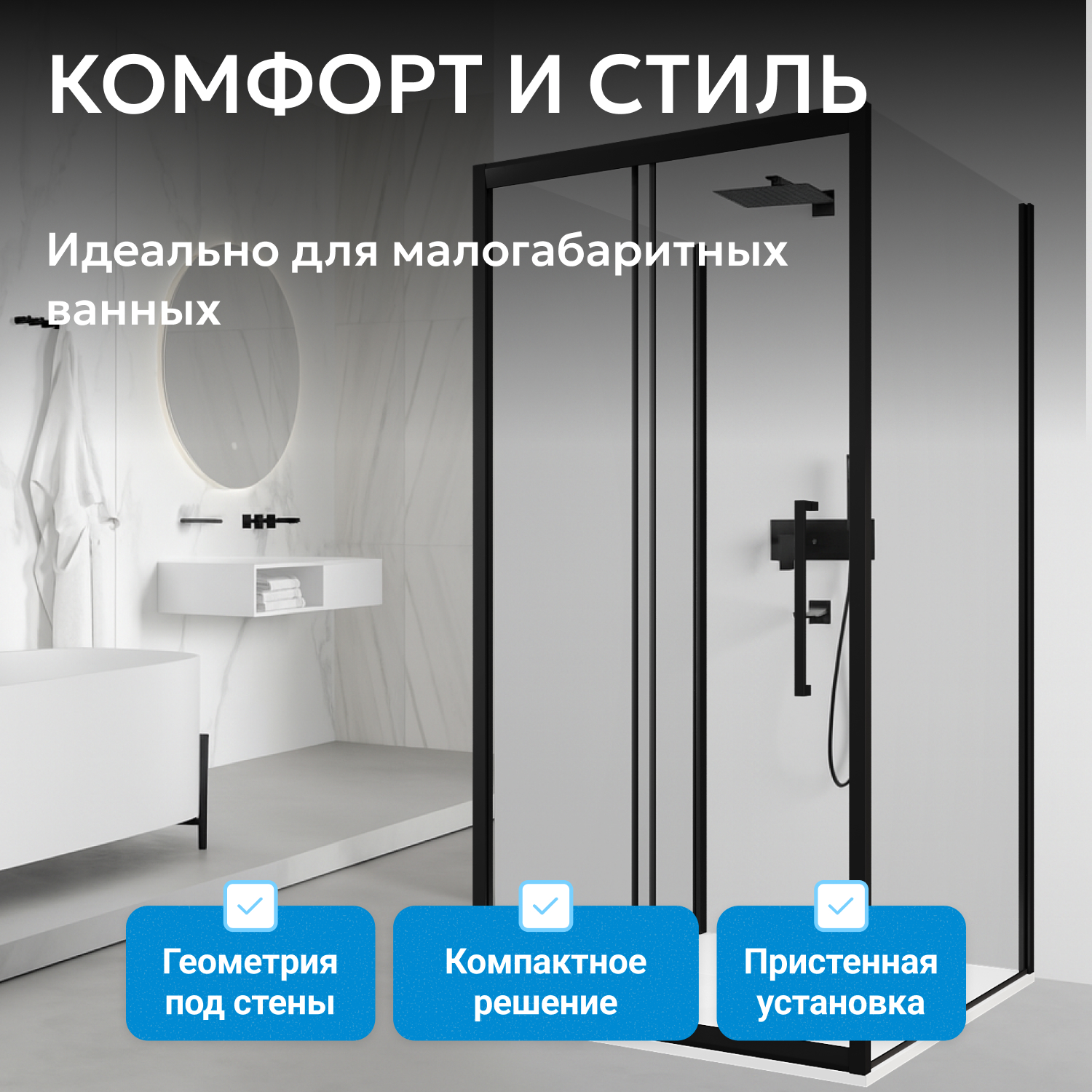 Поддон в комплект не входит, есть возможность выбрать совместимую модель, включая низкие варианты для комнат с ограниченным пространством.