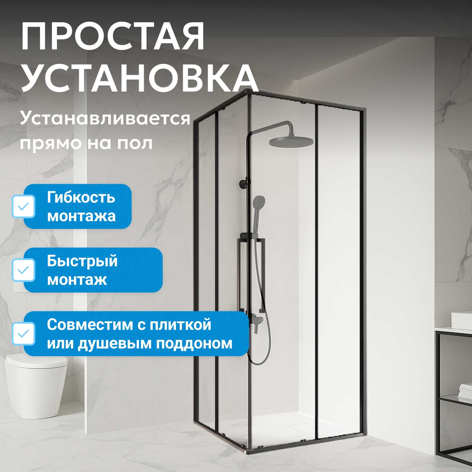 Высота 195 см подходит для пользователей разного роста. Универсальная конструкция упрощает монтаж даже при ограниченном пространстве. В изделии использованы безопасные материалы и скругленные детали для снижения риска травм. Возможна комплектация низким поддоном, который приобретается отдельно.