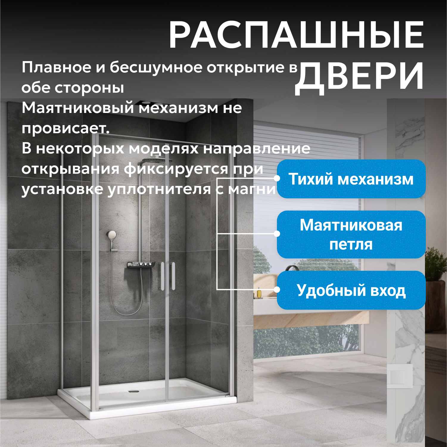 Душевой уголок ABBER Sonnenstrand AG04100C-S100 сочетает немецкие стандарты качества с учетом российских условий эксплуатации. Квадратная форма, прозрачное 6-миллиметровое закаленное стекло и хромированный профиль создают современный внешний вид. Двойные распашные двери с маятниковыми петлями открываются внутрь и наружу, что удобно для различных планировок ванной комнаты.