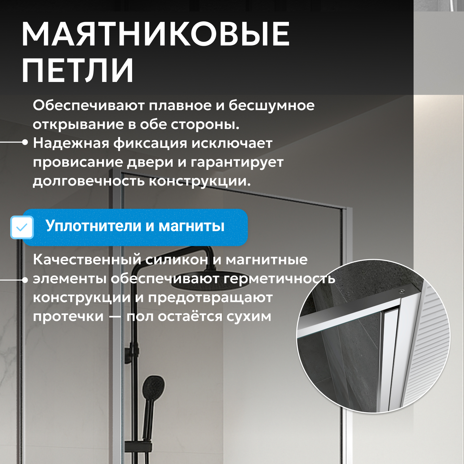 ABBER душ кабиналары анодталған алюминий профилінен және шыңдалған, соққыға төзімді шыныдан жасалған. Шыны душ кабиналары да бірқатар артықшылықтарға ие: тазалау оңай, сенімді және ұзақ жұмыс істейді.