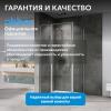 Изделие оснащено прозрачным стеклом толщиной 6 мм и хромированным профилем. Размеры 1100×1000 мм, высота 1950 мм. Металлическая ручка и маятниковый механизм распашной двери обеспечивают надежность и плавность хода.