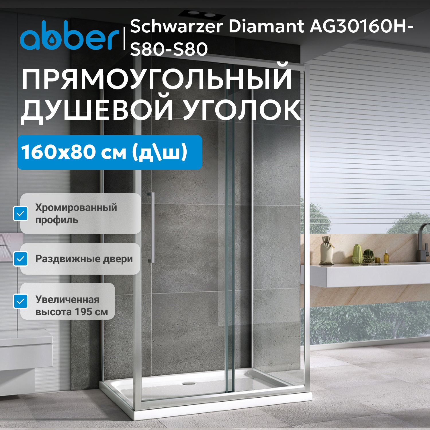 Душевой уголок ABBER Schwarzer Diamant AG30160H-S80-S80 выбирают для городских квартир и индивидуальных проектов, где ценятся надёжность, современный облик и сервисная поддержка.