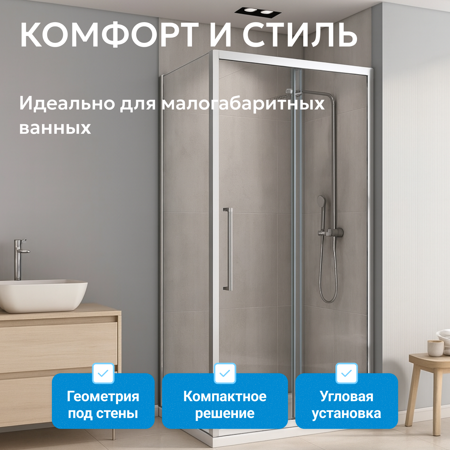 Модель оснащена раздвижной дверью с двойными роликами для плавной работы механизма. Металлическая ручка увеличенного размера удобна, даже если руки влажные. Ширина входа 398 мм подойдет для компактных помещений. Монтаж производится в угол, что позволяет рационально использовать пространство. Для установки требуется низкий поддон, который приобретается отдельно и подбирается под параметры ванной комнаты.