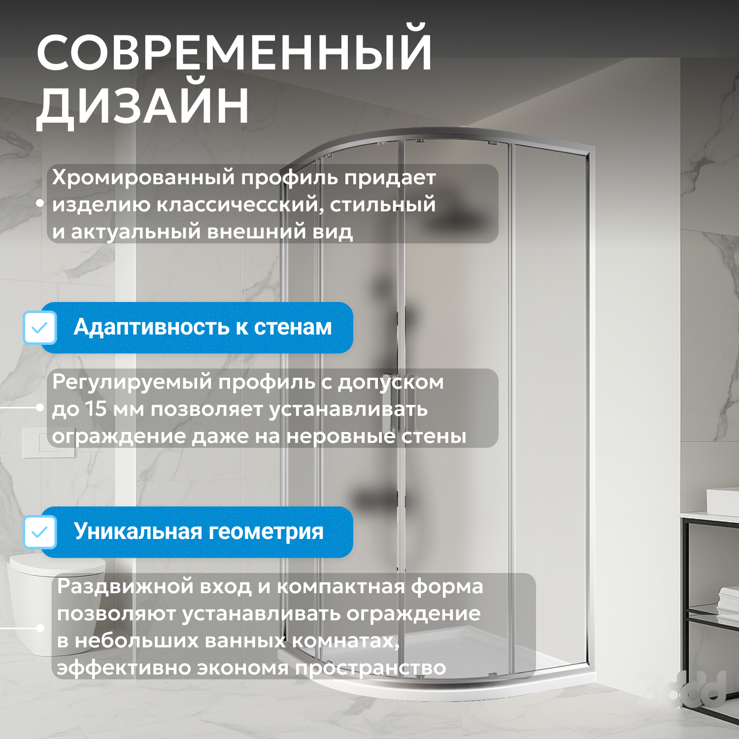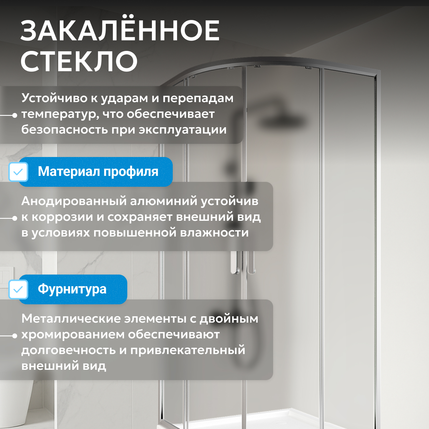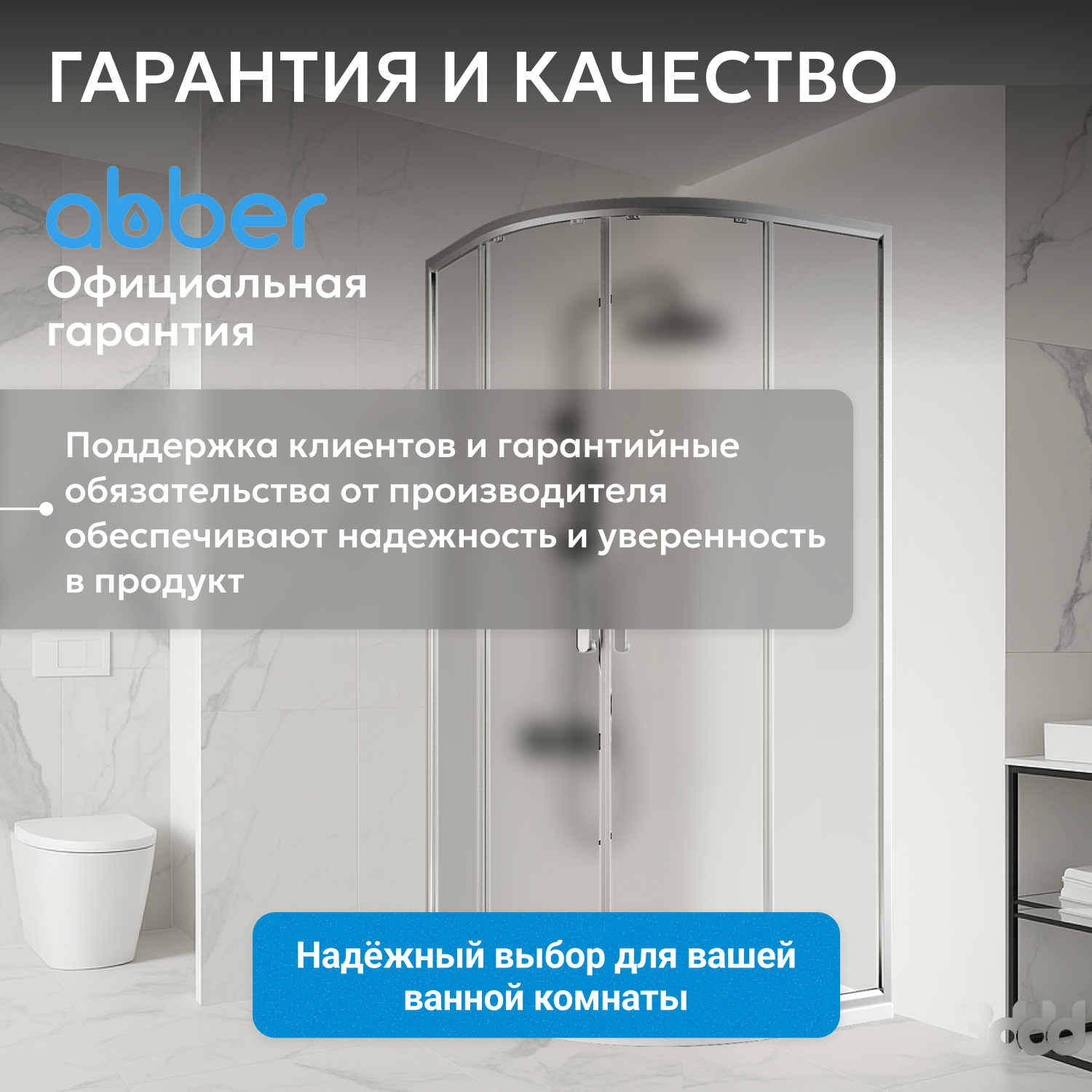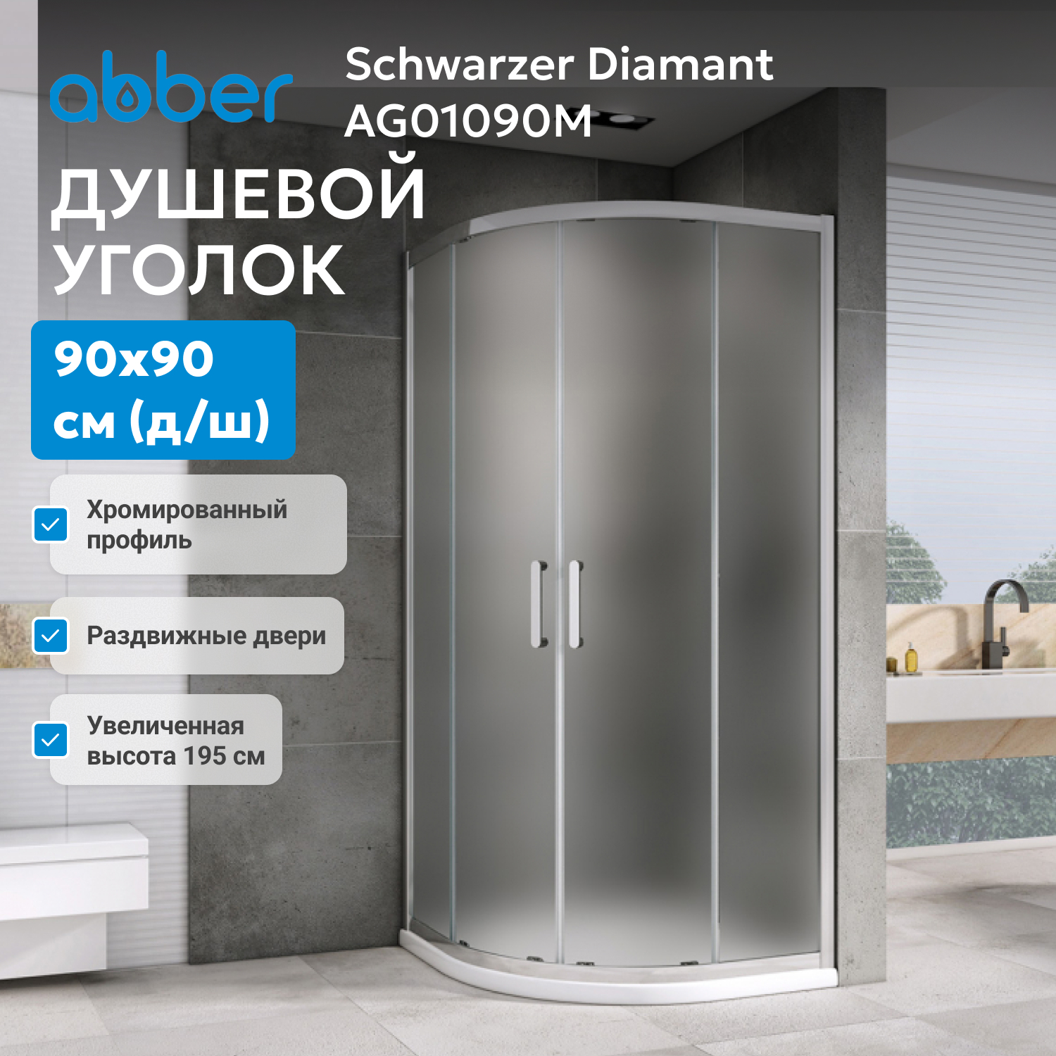 ABBER душ кабиналары анодталған алюминий профилінен және шыңдалған, соққыға төзімді шыныдан жасалған. Шыны душ кабиналары да бірқатар артықшылықтарға ие: тазалау оңай, сенімді және ұзақ жұмыс істейді.