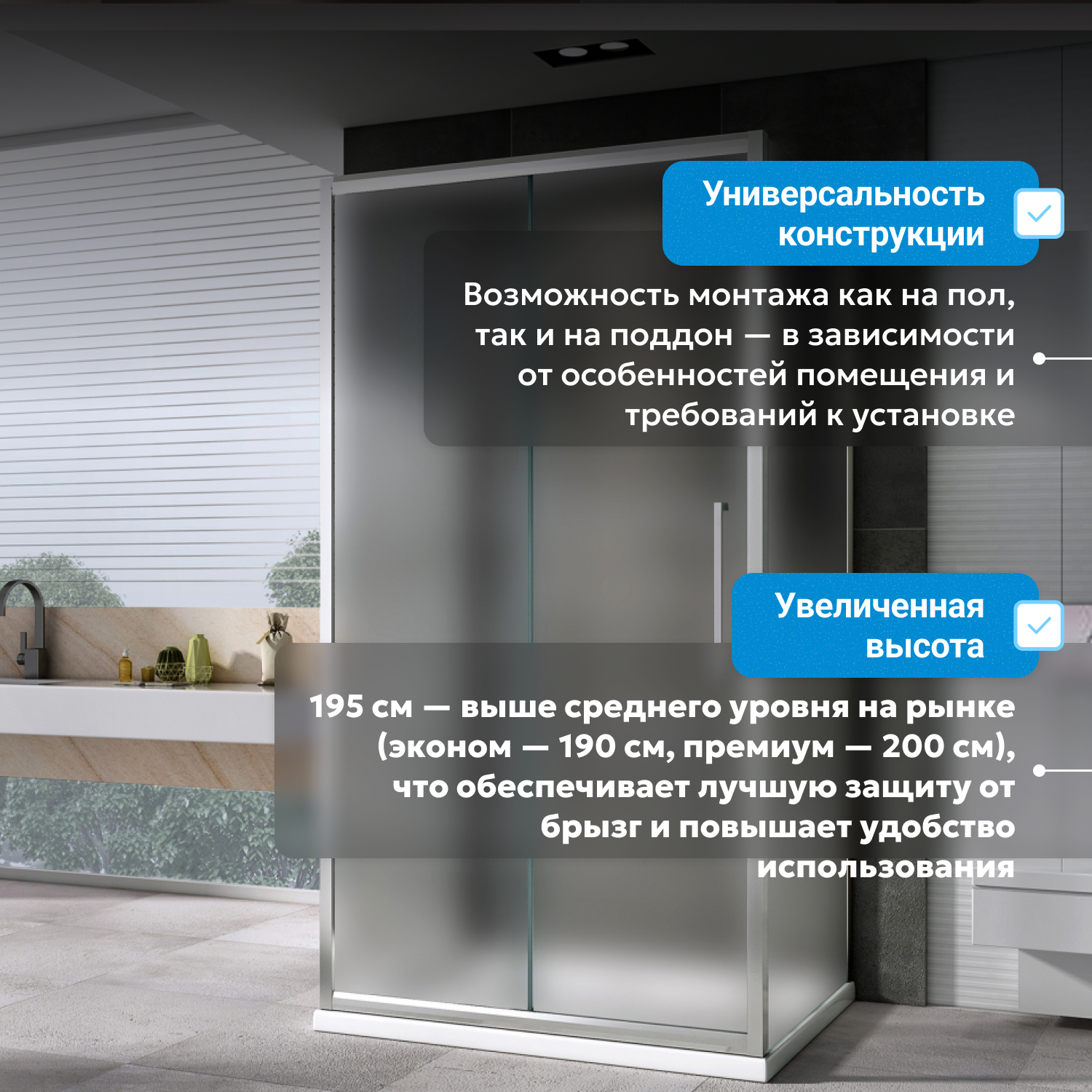 Душевой уголок ABBER Schwarzer Diamant AG30110MH-S100M-S100M сочетает в себе немецкие технологии и адаптацию под российские условия, подходя для частных и коммерческих интерьеров. Прямоугольная форма, размеры 1950×1000×1100 мм, вход шириной 448 мм. Матовое стекло толщиной 6 мм обеспечивает приватность и прочность, хромированный профиль поддерживает устойчивость конструкции. Раздвижная дверь снабжена увеличенной металлической ручкой, для плавного хода предусмотрены двойные ролики. Низкий поддон не входит в комплект и может быть подобран индивидуально.