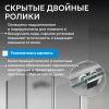 Матовое стекло толщиной 6 мм обеспечивает приватность и сочетается с разными стилями интерьера, отличается прочностью и безопасностью. Раздвижные двери на двойных роликах обеспечивают плавное и лёгкое открывание. Металлическая ручка облегчает ежедневное использование.