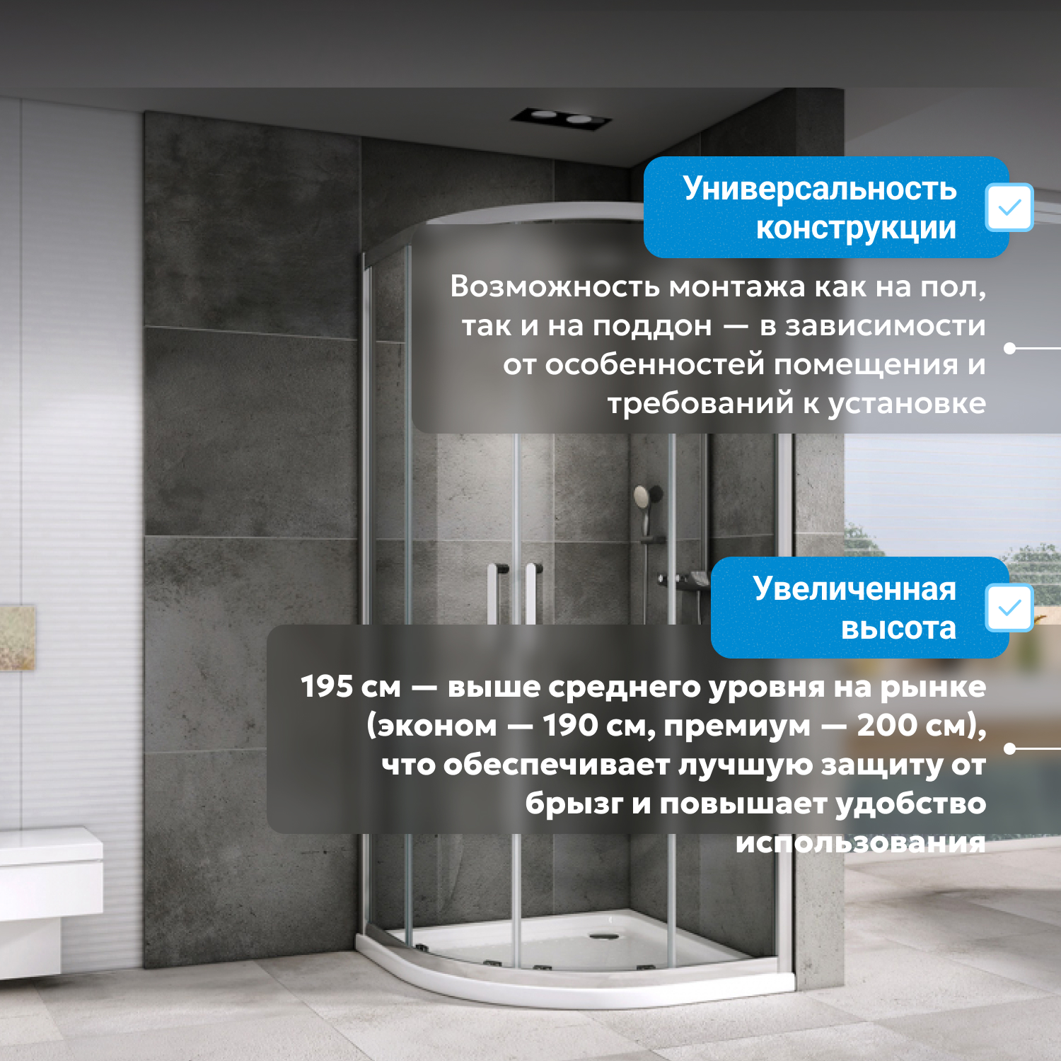 ABBER душ кабиналары анодталған алюминий профилінен және шыңдалған, соққыға төзімді шыныдан жасалған. Шыны душ кабиналары да бірқатар артықшылықтарға ие: тазалау оңай, сенімді және ұзақ жұмыс істейді.