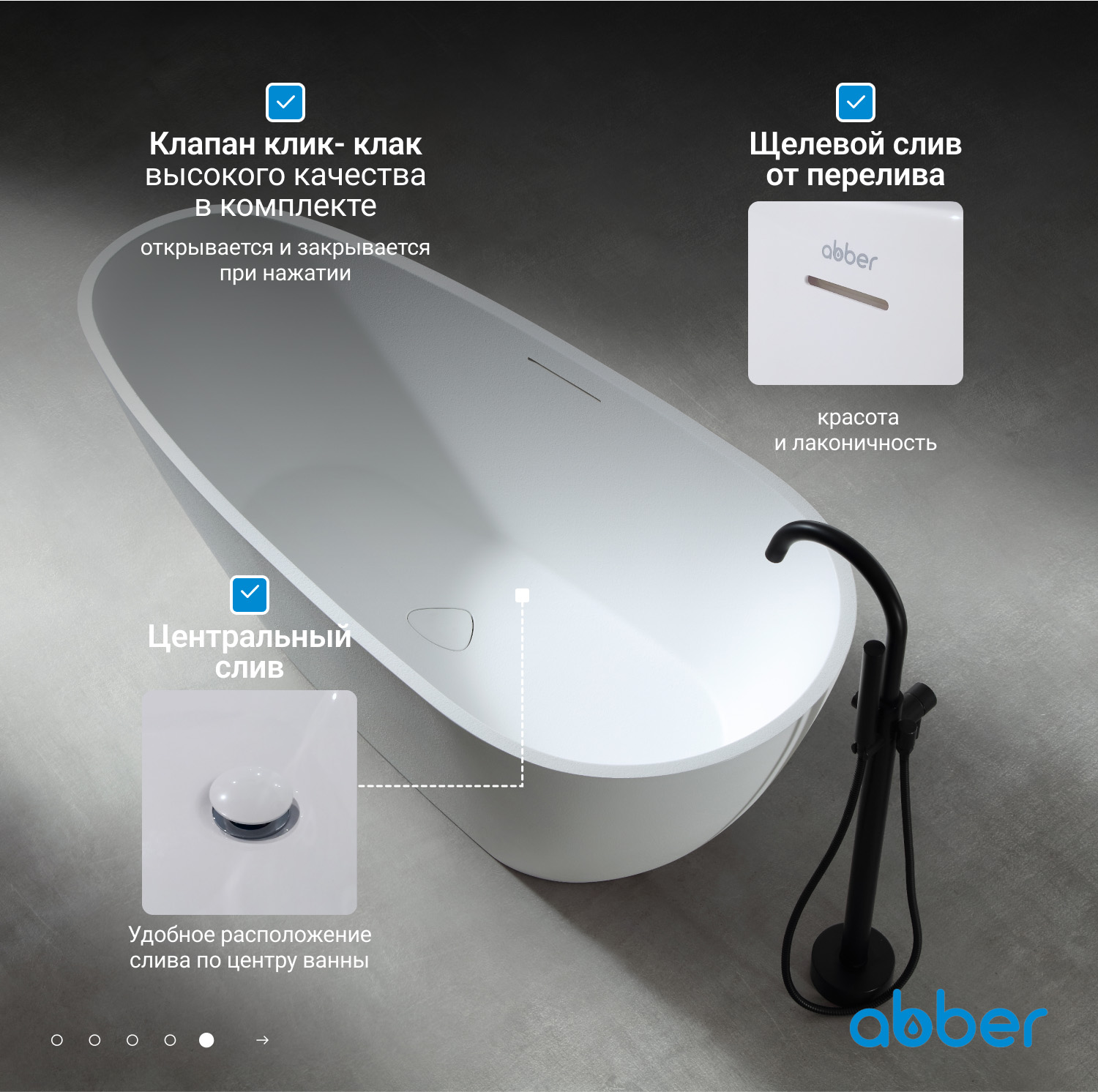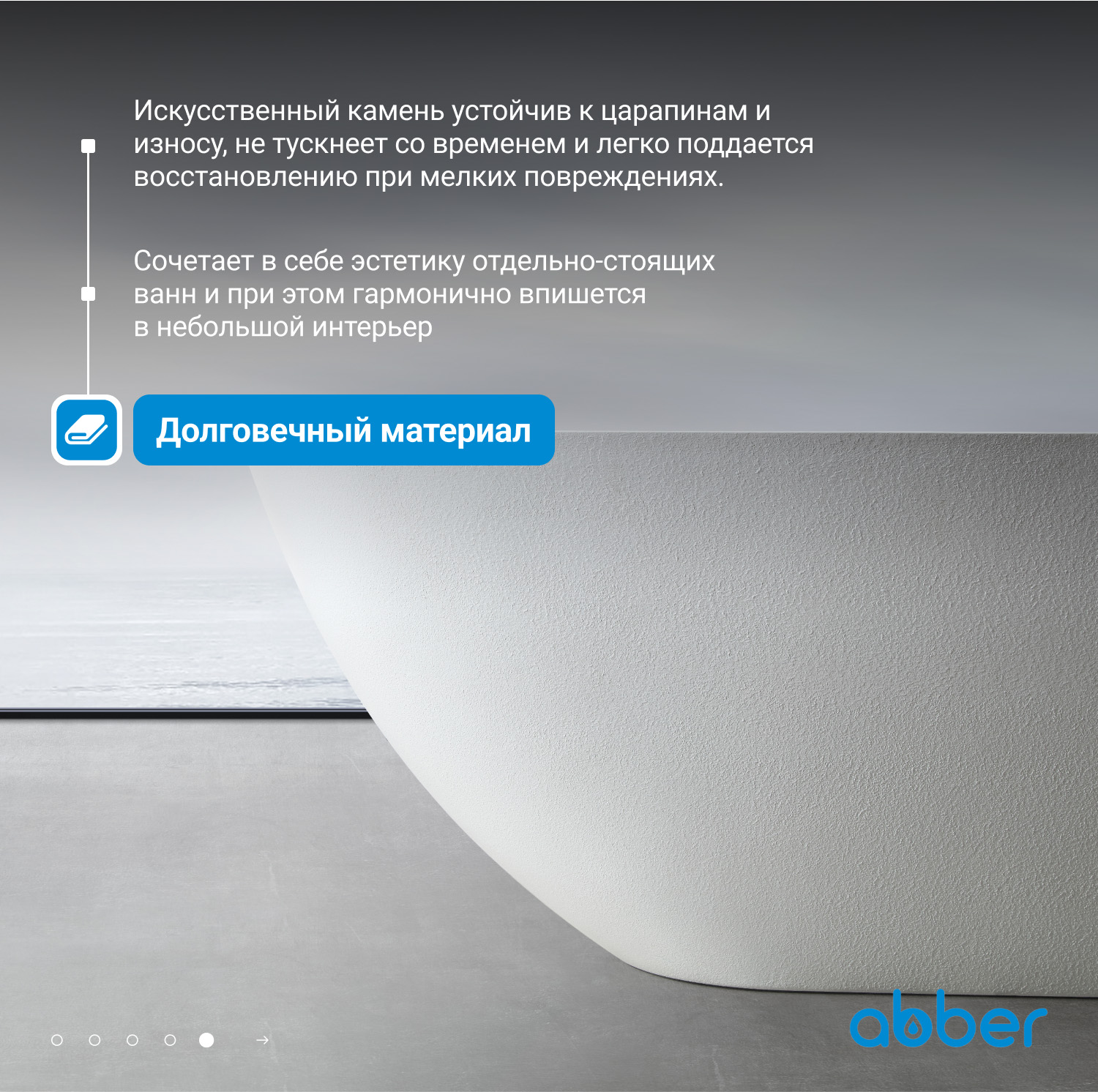 Ванна выполнена из искусственного камня ABBER Rock - инновационный многослойный материал, который во многом превосходит акрил и литой искусственный камень.