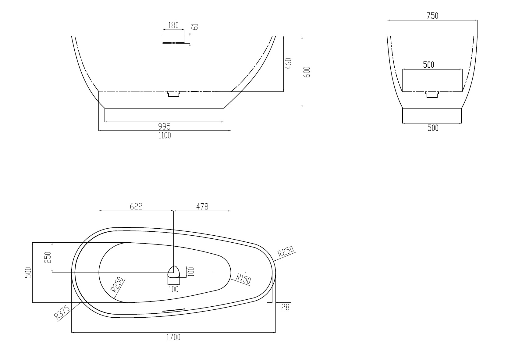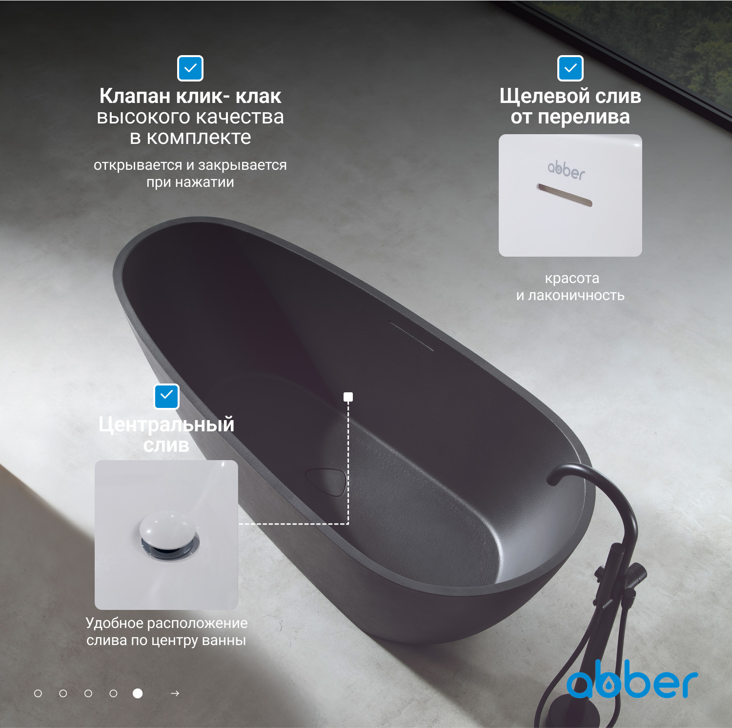 Ванна выполнена из искусственного камня ABBER Rock - инновационный многослойный материал, который во многом превосходит акрил и литой искусственный камень.