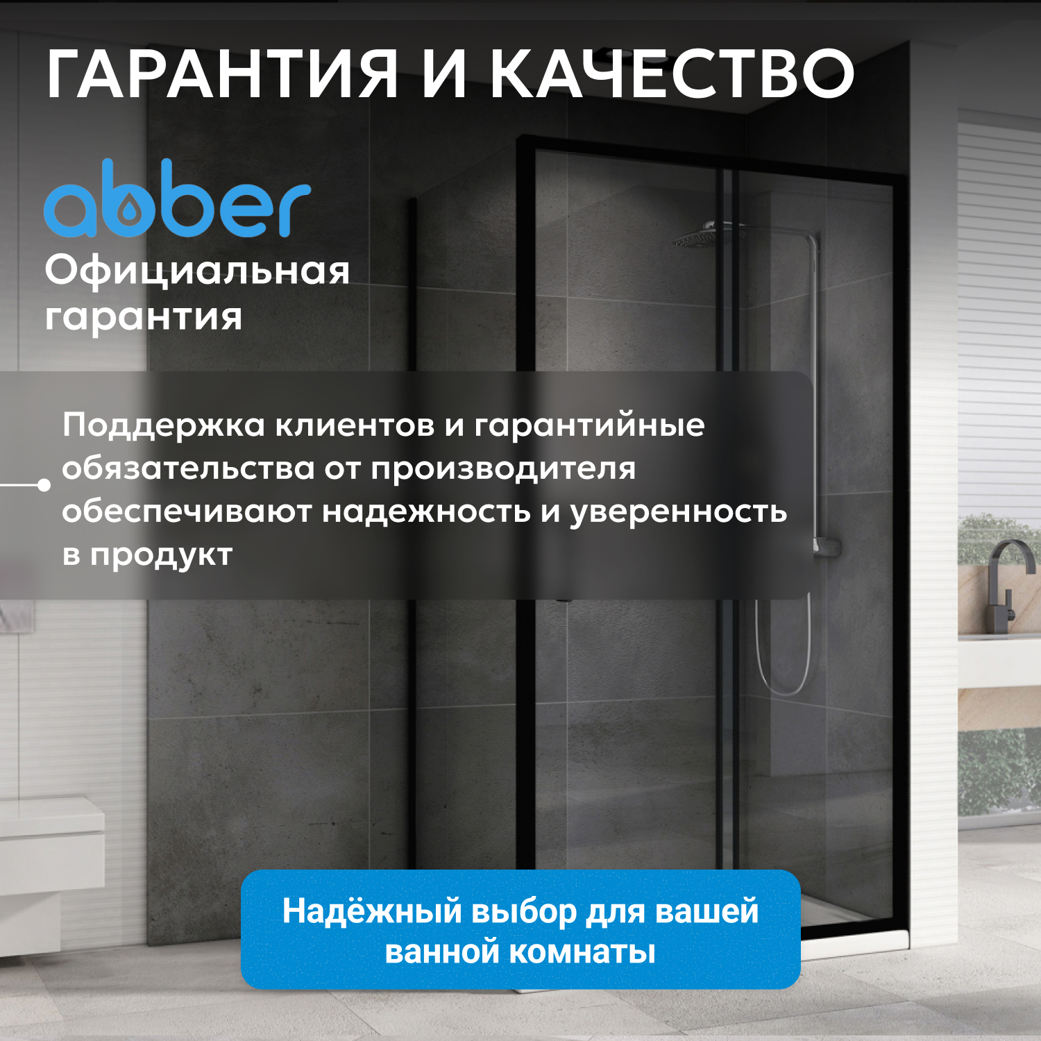 ABBER душ кабиналары алюминий профилінен, ұнтақпен боялған және шыңдалған, соққыға төзімді шыныдан жасалған. Шыны душ кабиналары да бірқатар артықшылықтарға ие: тазалау оңай, сенімді және ұзақ жұмыс істейді.