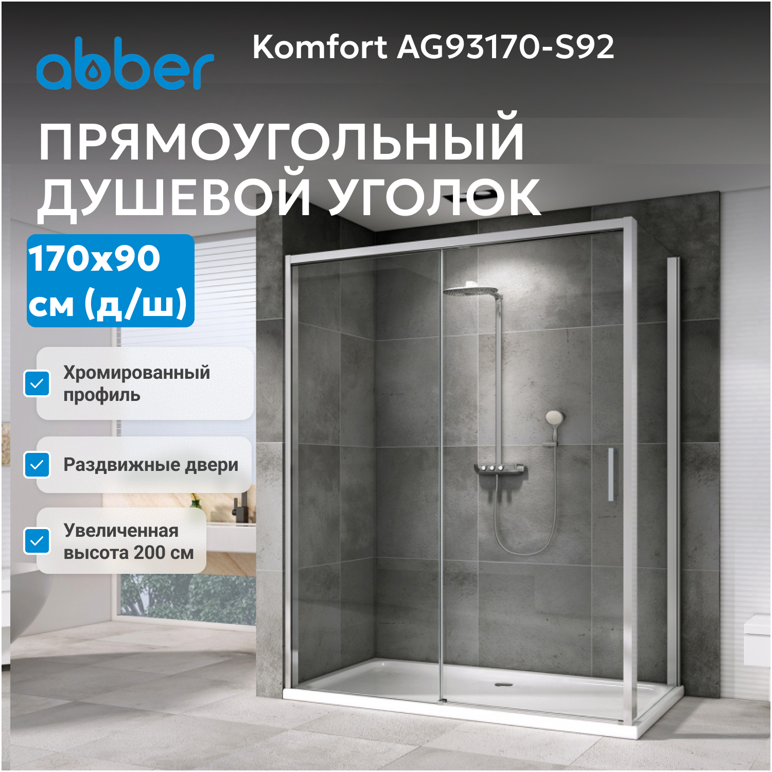 Душевой уголок ABBER Komfort AG93170-S92 — надежное сантехническое решение для ценящих практичность, современный дизайн и европейское качество.