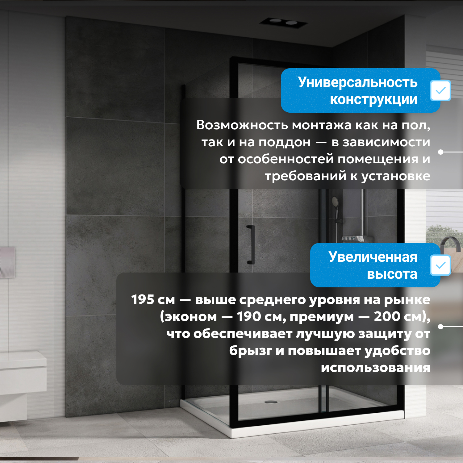 Душевой уголок ABBER Schwarzer Diamant AG30130B5-S50B5 отличается современным немецким дизайном и адаптирован под российские условия. Прямоугольная форма и универсальная конструкция позволяют установить его в любой угол, сохраняя пространство даже в небольших ванных. Прочное прозрачное стекло толщиной 5 мм придает легкость и обеспечивает хорошее освещение внутри.