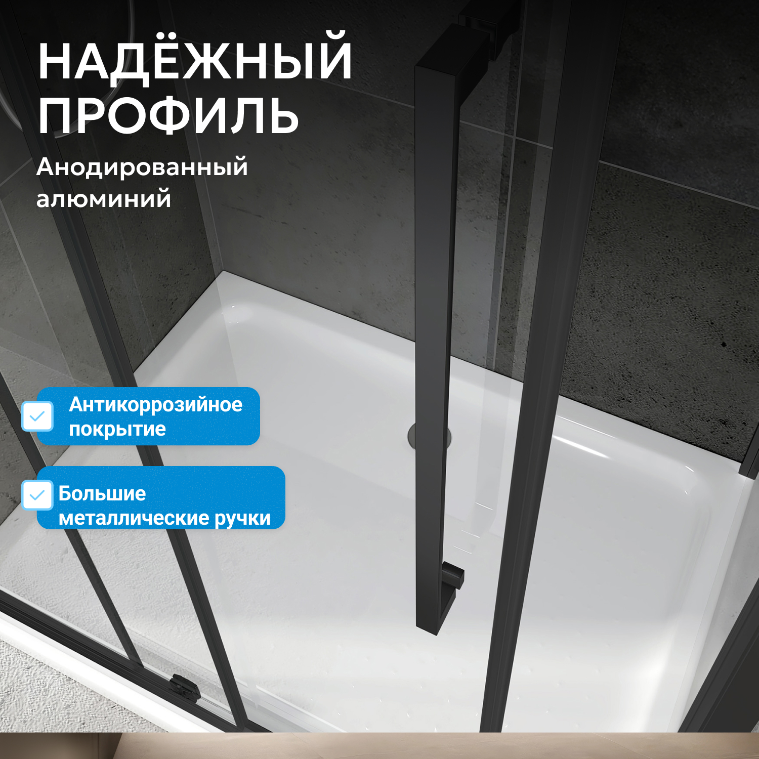 ABBER душ кабиналары алюминий профилінен, ұнтақпен қапталған бояудан және шыңдалған, соққыға төзімді шыныдан жасалған. Шыны душ кабиналары да бірқатар артықшылықтарға ие: тазалау оңай, сенімді және ұзақ жұмыс істейді.