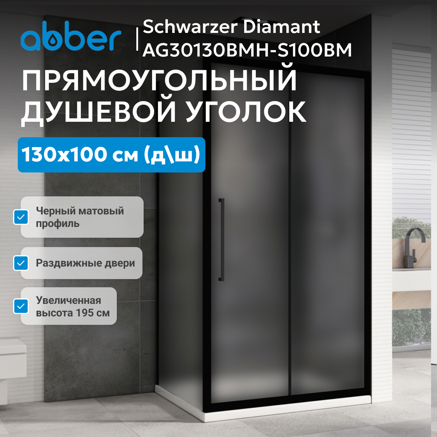 Душевой уголок ABBER Schwarzer Diamant AG30130BMH-S100BM сочетает немецкое качество материалов с лаконичным дизайном. Модель устанавливается в угол помещения, что удобно для компактных ванных комнат. Прямоугольная форма и размеры 130×100 см подходят для квартир, гостиниц или коммерческих объектов.