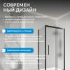 Матовое закалённое стекло толщиной 6 мм делает уголок прочным и безопасным. Черный профиль и строгие линии подходят под современные интерьеры. Поддон не входит в комплект, что позволяет выбрать подходящий вариант в соответствии с предпочтениями.