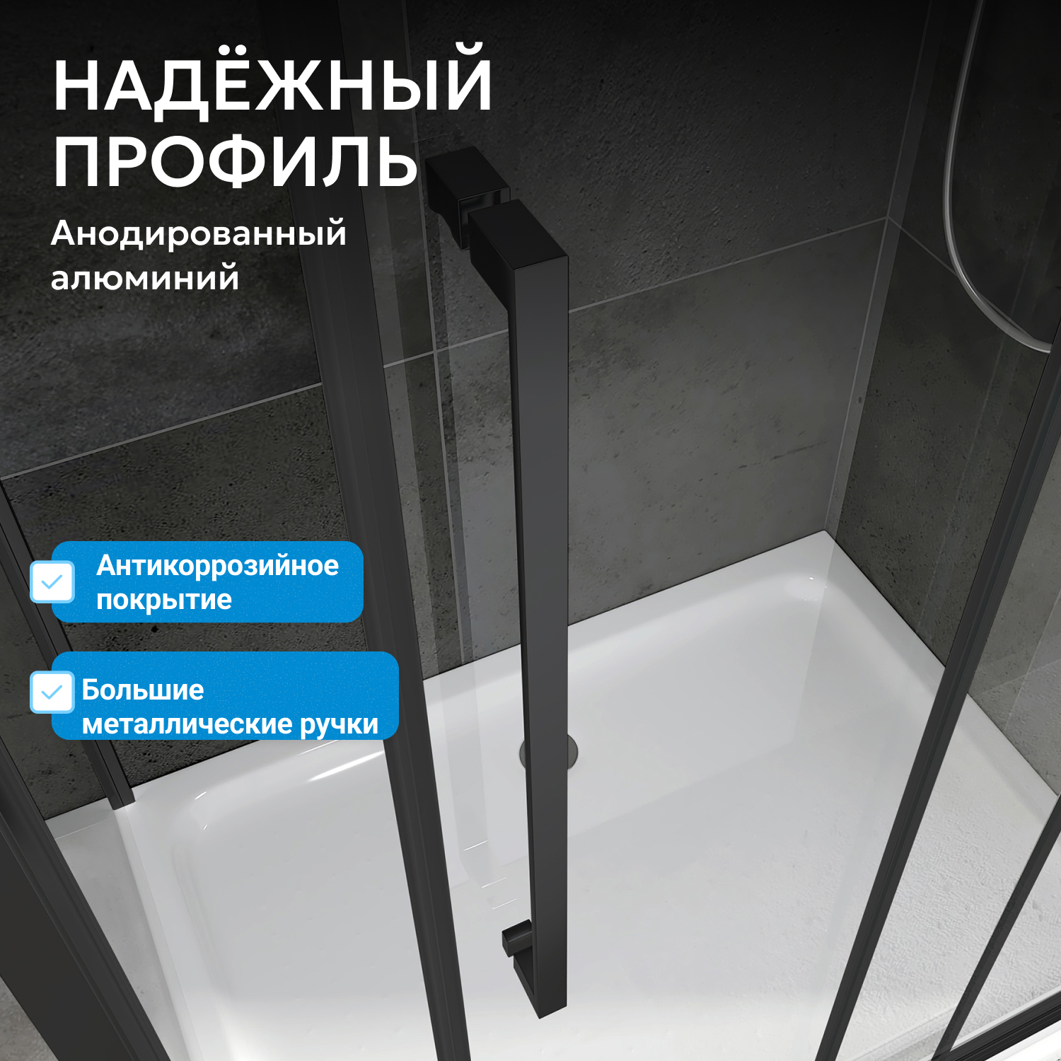 Модель поставляется без поддона, что позволяет подобрать его отдельно с учетом особенностей помещения. Отсутствие доводчиков снижает количество составных элементов и повышает надежность. Душевой уголок производится по стандартам немецкого качества и адаптирован к российским условиям эксплуатации. Гарантия — 3 года.