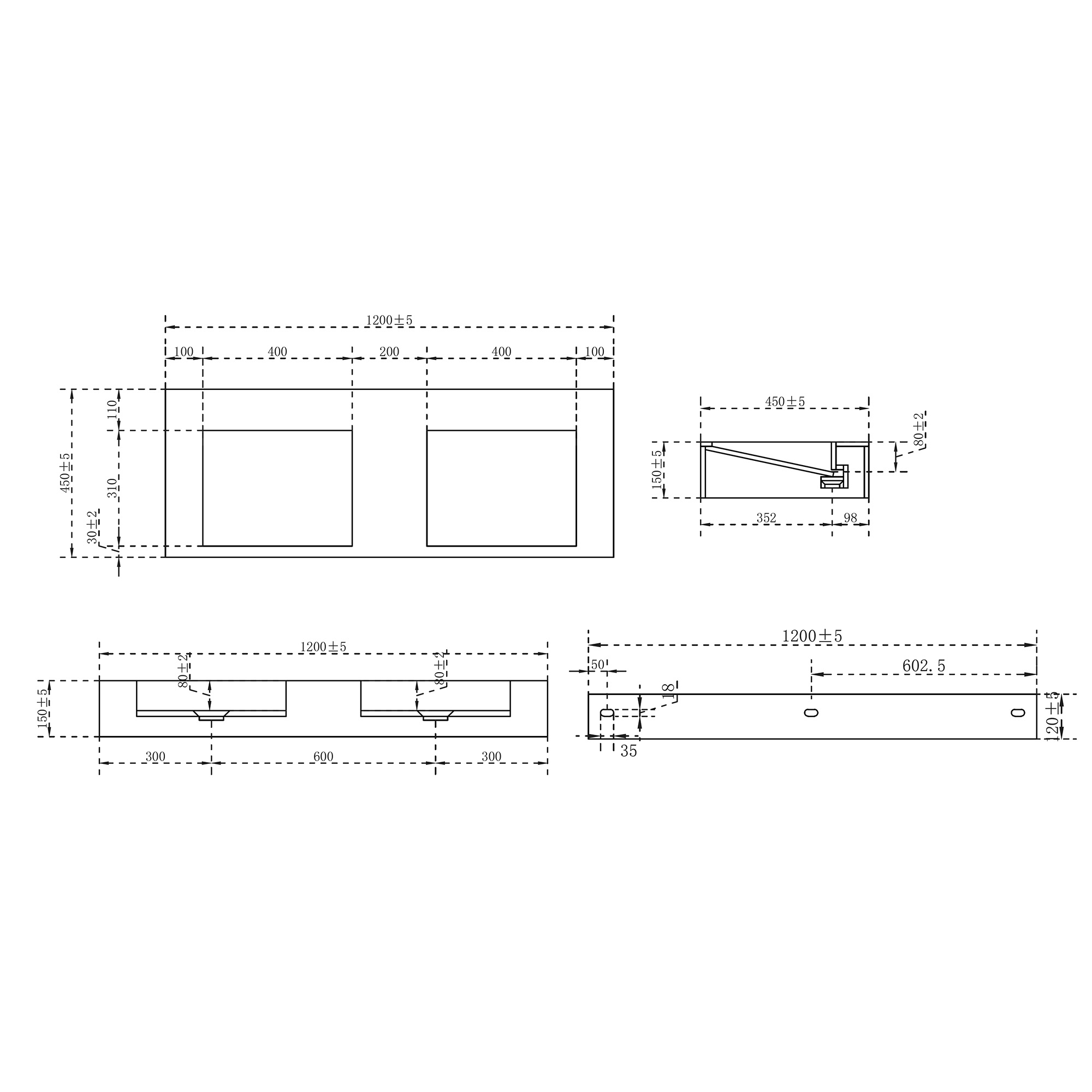 Раковина подвесная ABBER Stein AS2643-1.2 двойная, белая матовая