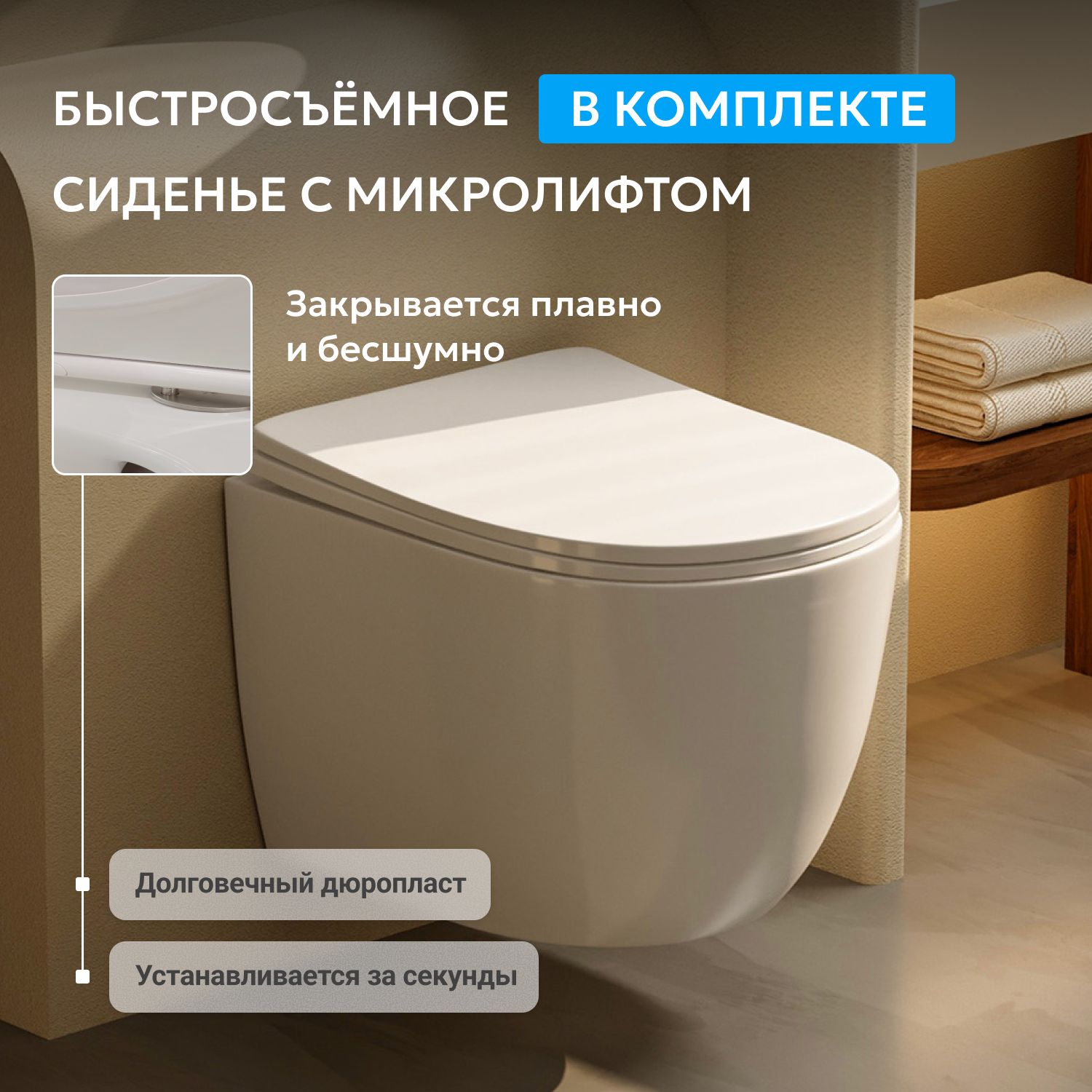 Унитаз ABBER Bequem AC1100T подвесной белый, безободковый, смыв торнадо