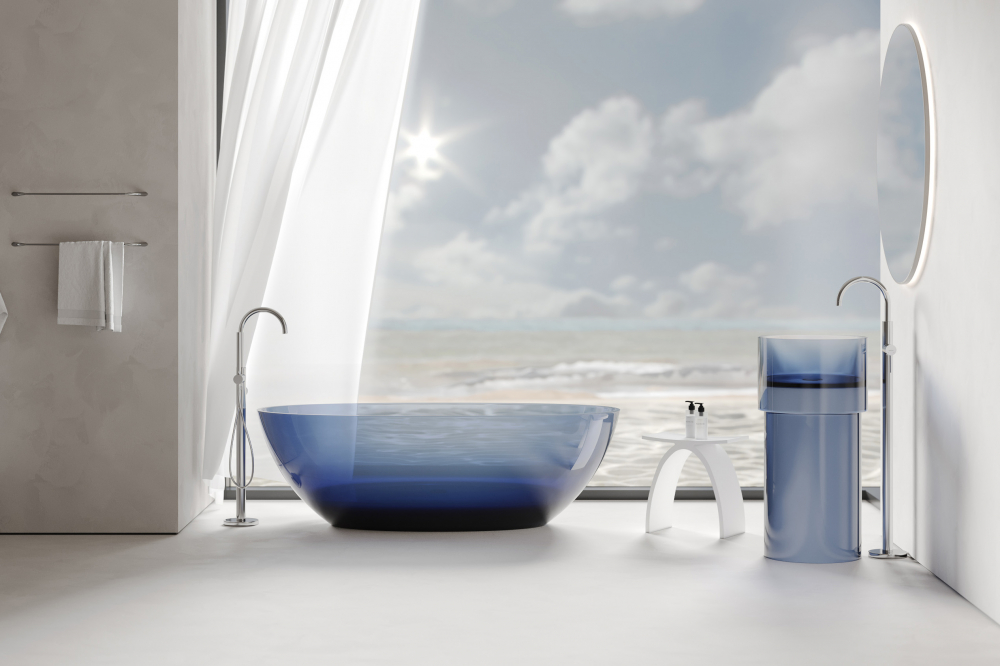 Раковина отдельностоящая прозрачная ABBER Kristall AT2701Saphir-H синяя