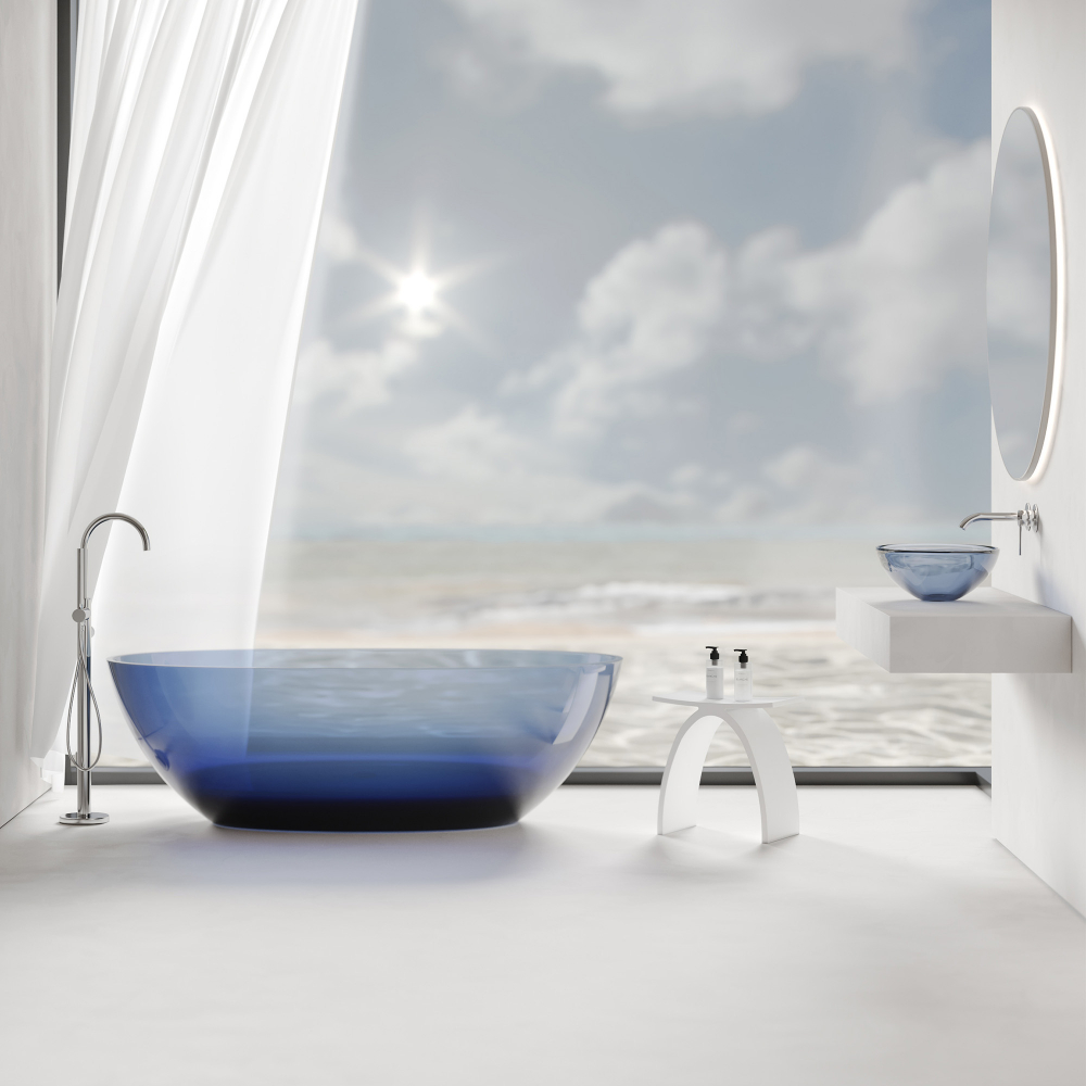 Раковина накладная прозрачная ABBER Kristall AT2802Saphir синяя
