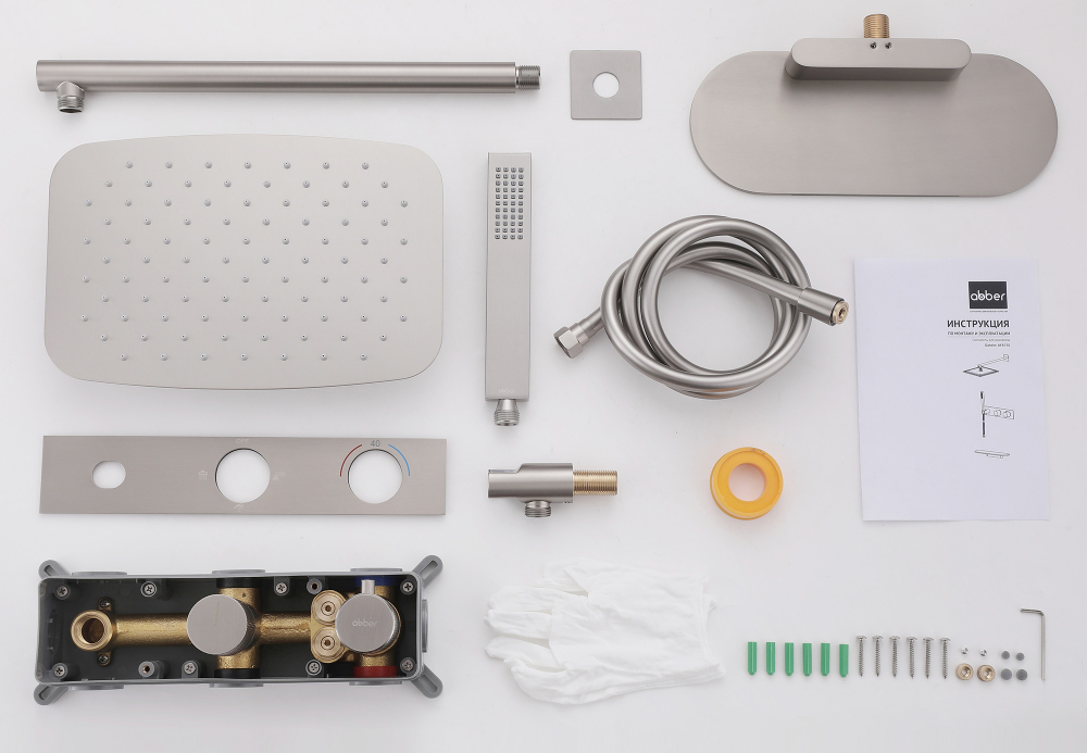 Душевая система ABBER Rund AF8750SP скрытого монтажа с изливом, термостат, сатин