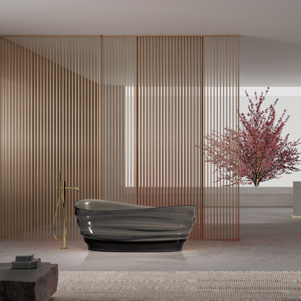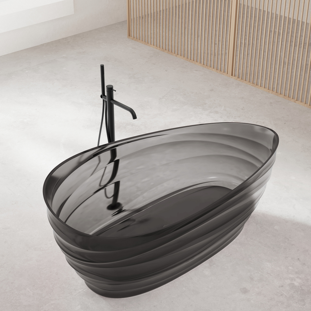 Отдельностоящая прозрачная ванна Abber Kristall AT9709Onyx: элегантность чёрного в скульптурной форме