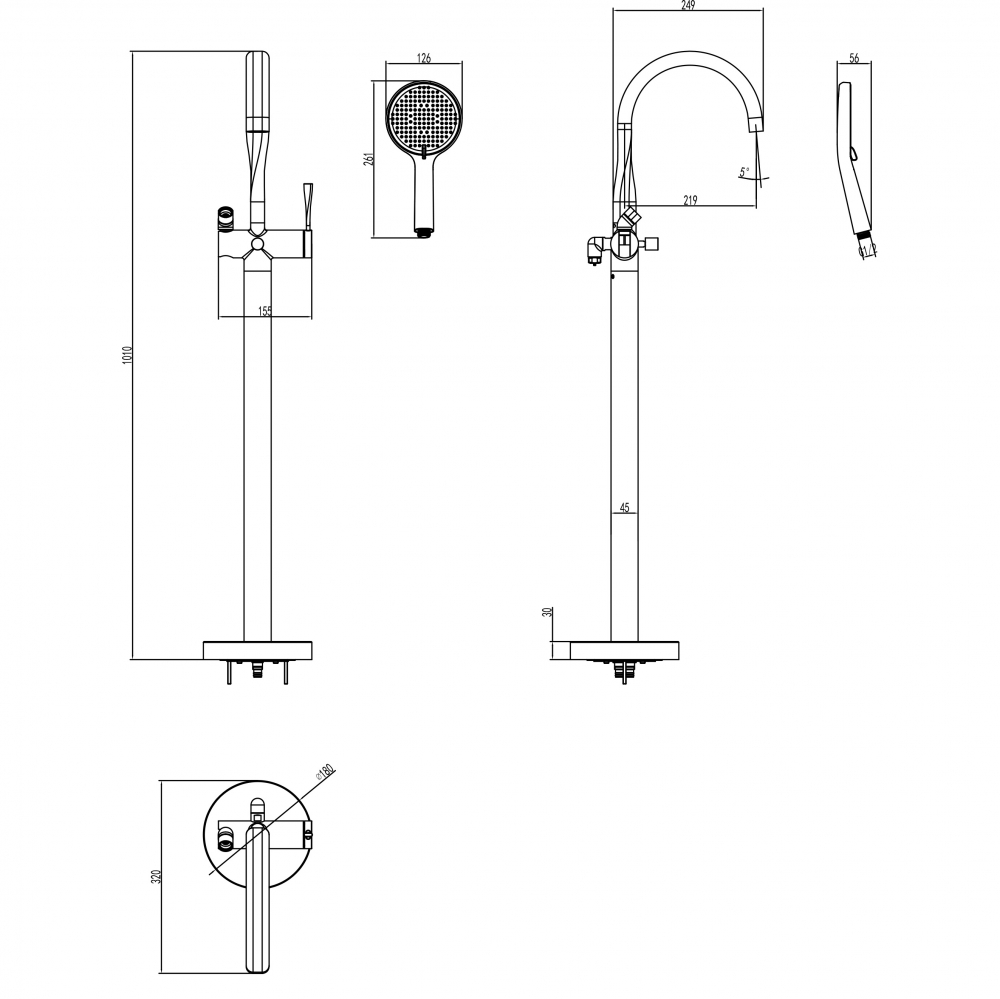 Смеситель ABBER Tanz AF8C15GM напольный для ванны, оружейная сталь