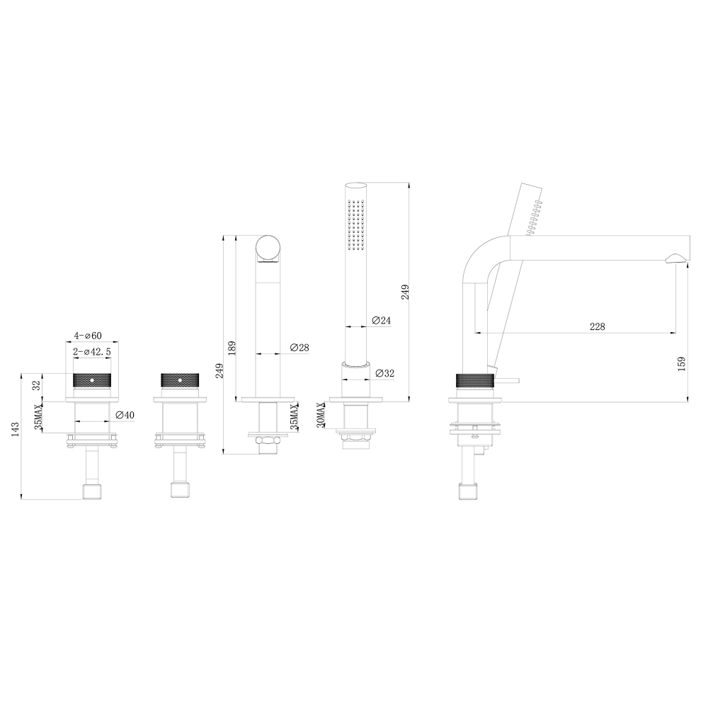 Смеситель ABBER Emotion 316 AF8813BST на борт ванны, брашированная сталь