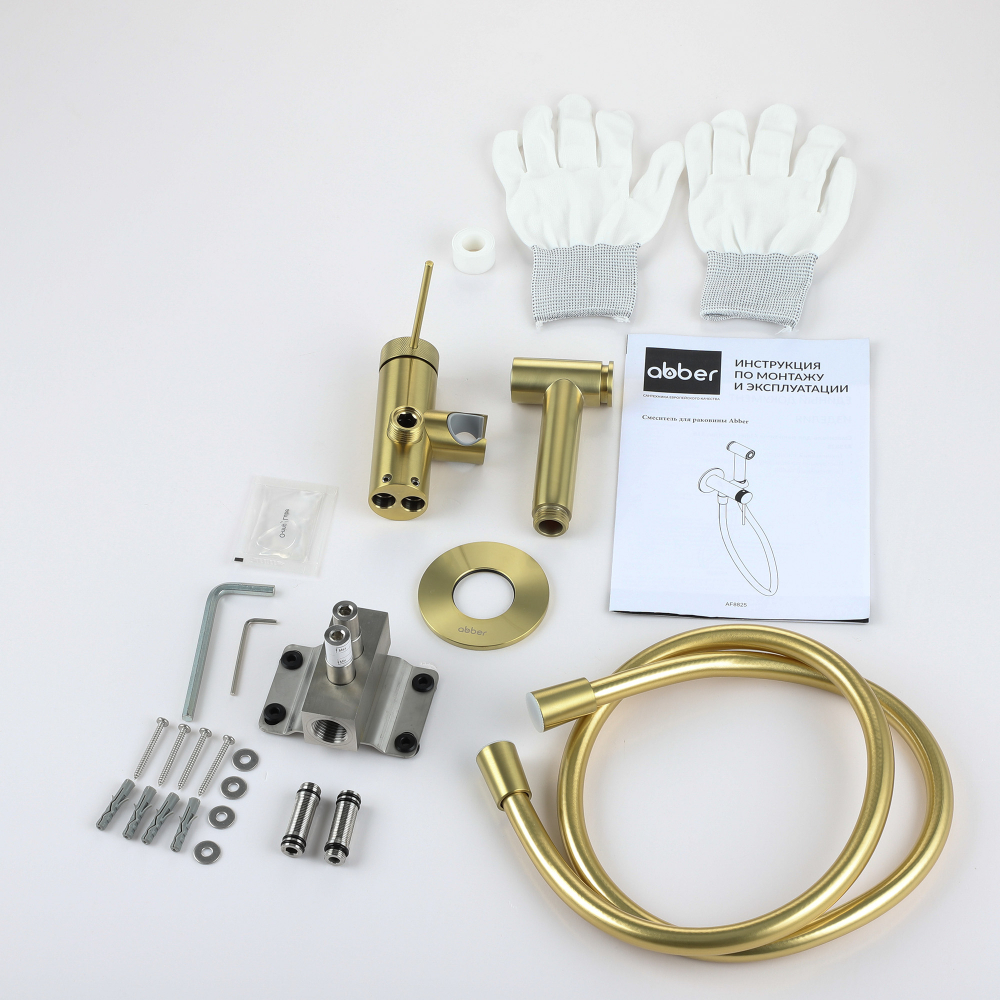 Смеситель ABBER Emotion 316 AF8825BG с гигиеническим душем, брашированное светлое золото