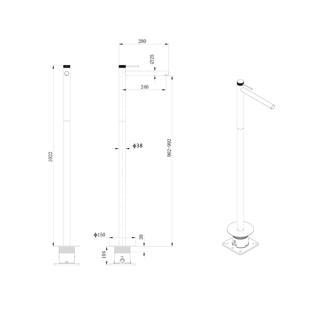 Смеситель ABBER Emotion 316 AF8843BST отдельностоящий для раковины, брашированная сталь
